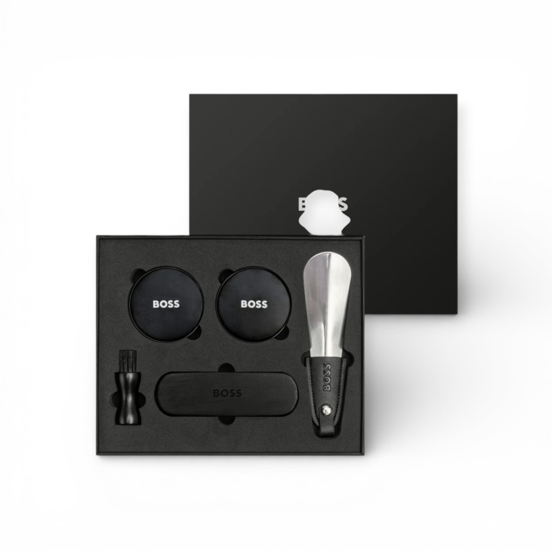 Sada obsahuje vše potřebné pro základní péči o obuv a je dodávána v elegantní dárkové krabičce BOSS, díky čemuž představuje ideální stylový dárek.