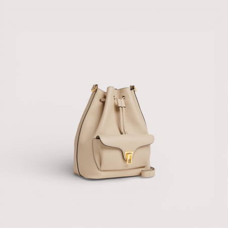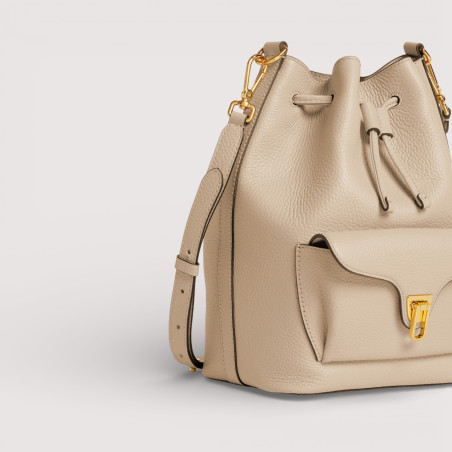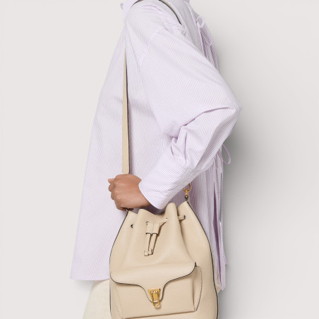Coccinelle BEAT je jednou z ikon značky: charakteristická spona s bubínkem je symbolem identity Coccinelle, který je pro tuto kolekci nově vymyšlený s moderní a elegantní funkčností. Kožená pytlová kabelka s ramenním popruhem je dokonalou kombinací měkkosti, praktičnosti a současného designu.