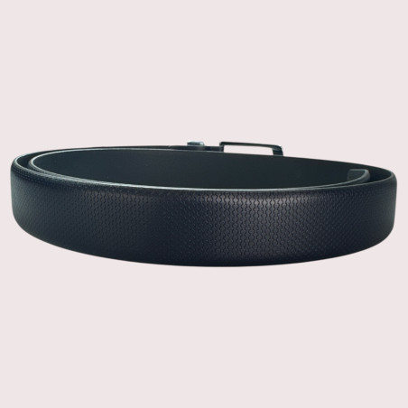 Vyroben z kvalitní hladké černé kůže, s masivní kovovou přezkou ve stříbrném tónu a možností úpravy délky pro maximální pohodlí a přesné padnutí.