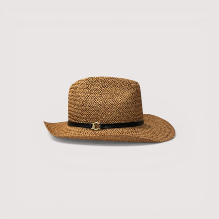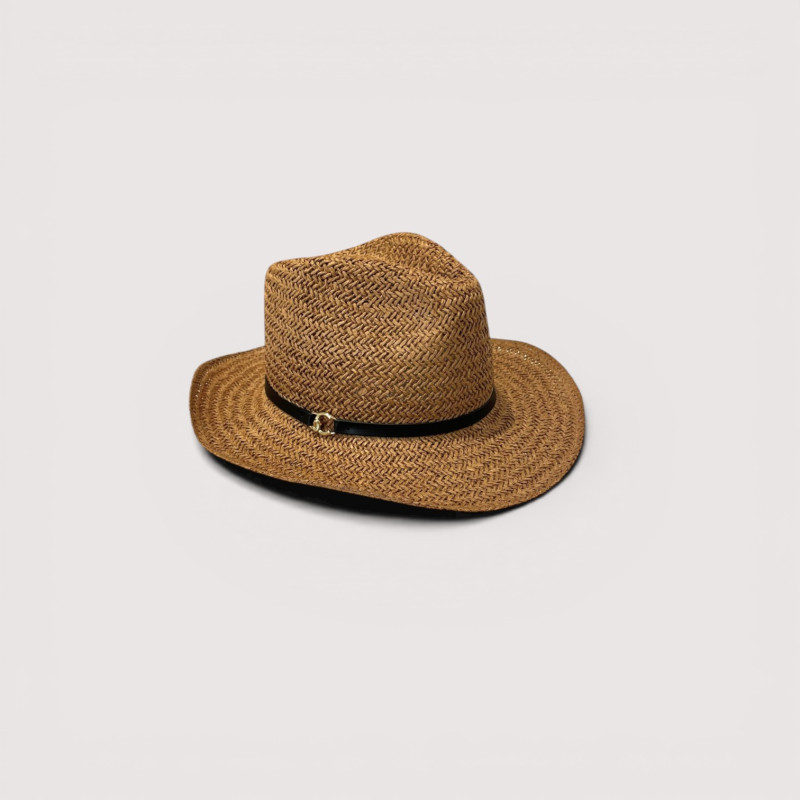pojetí klasického střihu s rafinovanými detaily: lehkou a vzdušnou texturou a koženou stuhou s logem v podobě písmene ,,C,, čímž povyšuje tento doplněk na dokonalý doplněk letních outfitů