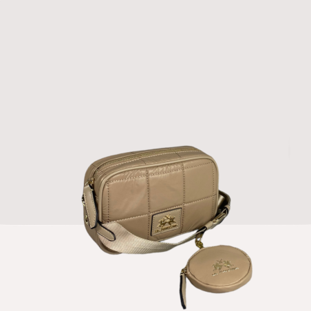 Jednoduchý minibag La Martina Rosita s dlouhým, odnímatelným, látkovým popruhem s odnímatelnou kulatou kapsičkou. Popruh je i široký pro pohodlné nošení.