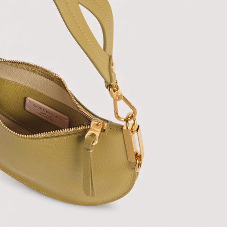 Charakteristickým znakem řady Coccinelle SUNUP je zaoblená silueta, která se odráží i v jejím názvu. Rukojeť je charakteristickým prvkem této řady, modelovaná podle stejných ženských křivek, které vykreslují klikaté proplétání, což jí dodává nádech originality. Oboustranná kůže umocňuje měkkost a lehkost kabelky, a to i díky nepodšitému vnitřku, který jí dodává originální nádech díky hře kontrastních barev. Tento model je vyroben z kůže zpracované pomocí specializovaných strojů a následně tromlované pro mimořádně jemný povrch.