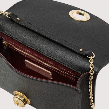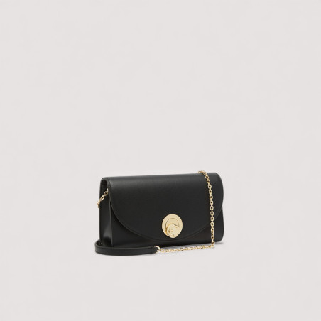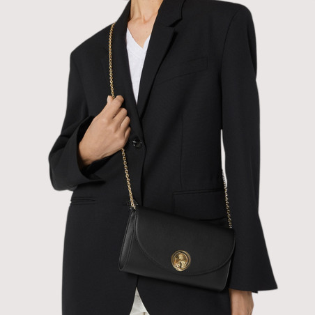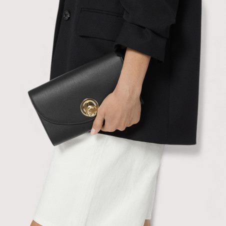 U řady Coccinelle NIKLA smooth se logo C-Me stává rafinovaným otočným zámkem, který elegantně zakončuje tuto kabelku s klopou. Sofistikovaný a moderní design v sobě spojuje nadčasovou eleganci s moderní siluetou, kterou podtrhuje měkkost kůže. Tento model má jemný řetízek a kožený ramenní popruh, ideální pro zvláštní příležitosti.