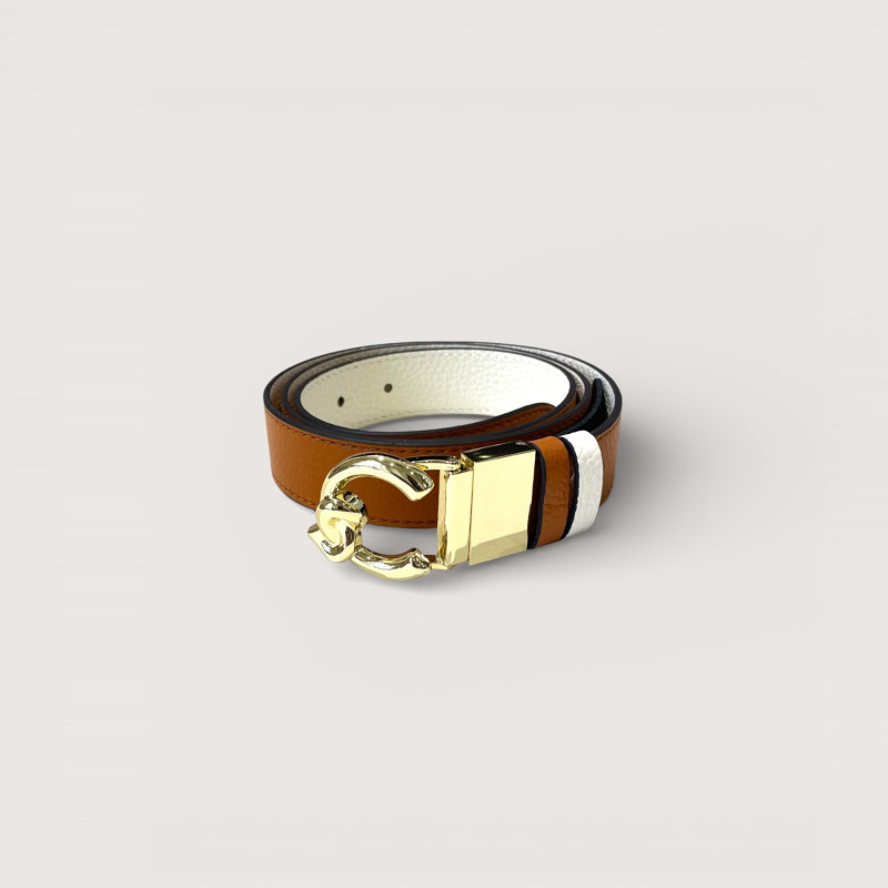 Opasek řady C-ME zdobí logo reinterpretované prostřednictvím písmene C Coccinelle, které se spojuje a objímá bubínek, ikonický prvek značky. Jeho charakteristickým rysem je oboustranná dvoubarevná osička, ideální pro kombinaci s jakýmkoli vzhledem.