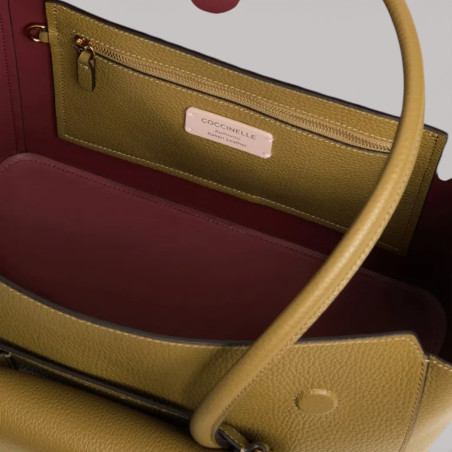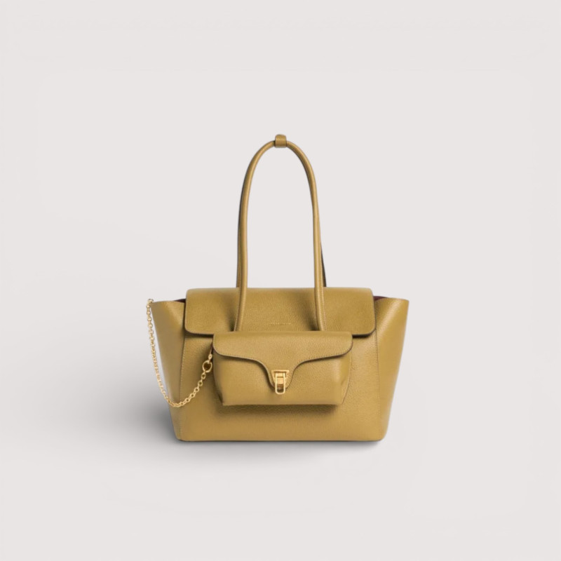 Coccinelle Double Beat je opravdovým každodenním společníkem, prostornou taškou s klopou, vybavenou praktickými trubkovými uchy, aby se dala pohodlně nosit na rameni. Díky inovativnímu řešení je přední kapsa odnímatelná a v případě potřeby se promění v praktickou taštičku nebo elegantní psaníčko, které se hodí pro nejvýznamnější příležitosti. Kapsy jsou také symbolem identity Coccinelle díky ikonickému detailu v podobě trsátka.